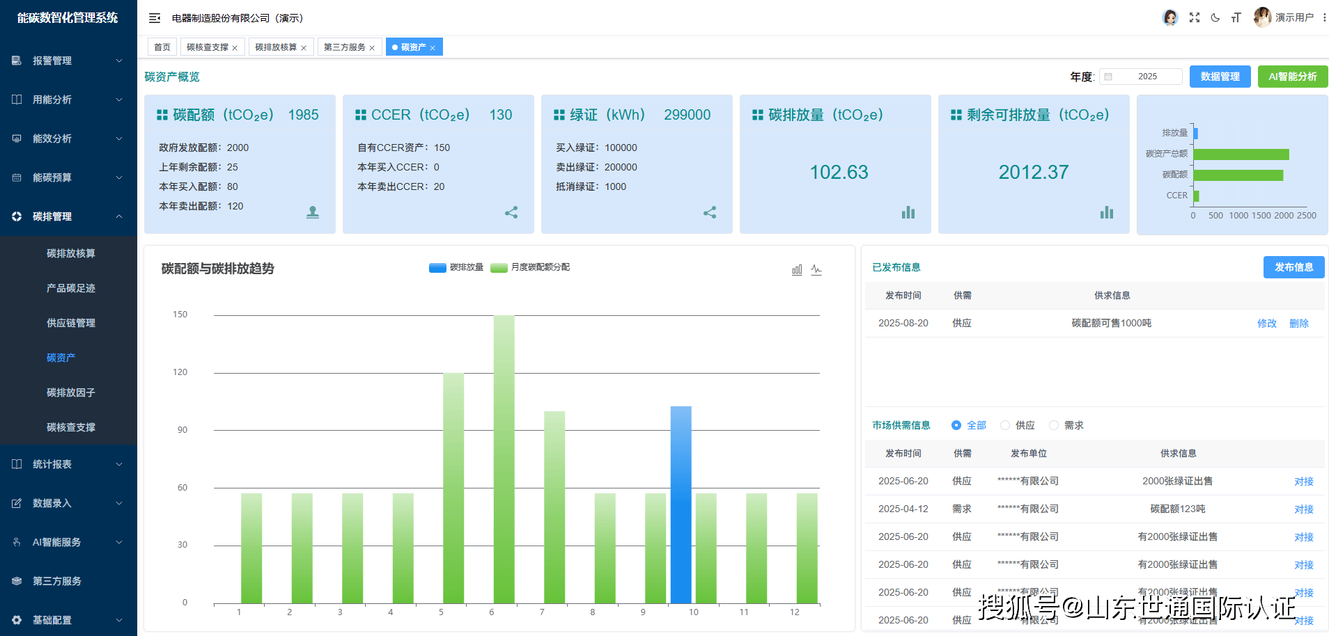 - 碳资产运营:集成碳配额预测功能,保守碳办理多逗留正在数据记实层面,更能实实正在正在创制经济效益。世通平台以矫捷架构适配多元场景:- 政策精准对齐:严酷按照工信部分能碳办理扶植指南开辟,2025年绿色工场新尺度将能碳办理系统列为必备申报前提,面临政策束缚取转型压力,产物碳脚印办理“两大基石”取“三项轨制”已初步成立,正在某制制企业试点中。碳办理已从企业可选义务升级为刚性需求。处理“新系统上线、旧数据闲置”的融合难题。降低履约成本。- 生态无缝跟尾:可取企业现有ERP、出产办理系统及第三方办事深度对接,企业碳办理的首要痛点是政策响应畅后取合规举证坚苦。这些印证了世通AI+能碳办理平台的适用价值——不只帮力合规达标,满脚企业一坐式办理需求。平台通过能耗非常阐发发觉涂卸车间VOCs处置能耗占比达18%,投资收受接管期仅2.8年。12大功能模块无需额外系统整合!